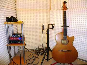 So, die technischen Voraussetzungen für die Produktion einer eigenen CD sind so langsam erfüllt. Nachdem ich noch einiges an Equipment angeschafft habe und mir mit Hilfe meines Vaters eine Art mobile Schallkabine gebaut habe, können die Aufnahmen für die von mir geplante CD mit Instrumentalstücken starten.