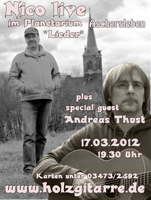 Am 17.03.2012 ab 19:30 spiele ich gemeinsam mit "Nico" ein Konzert in Planetarium Aschersleben.